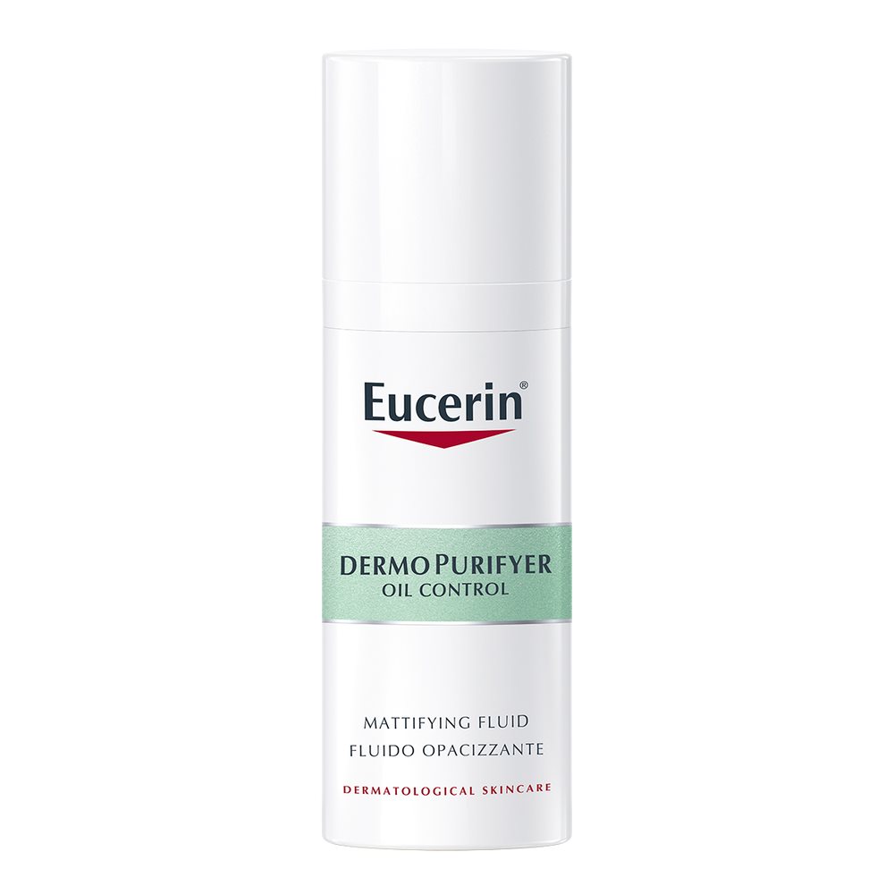 Eucerin DermoPurifyer Adjunctive Cream has been specially formulated to address the needs of skin that has been dried out and irritated by medical acne treatment. Eucerin DermoPurifyer Mattifying Fluid works against blemishes and excess sebum.